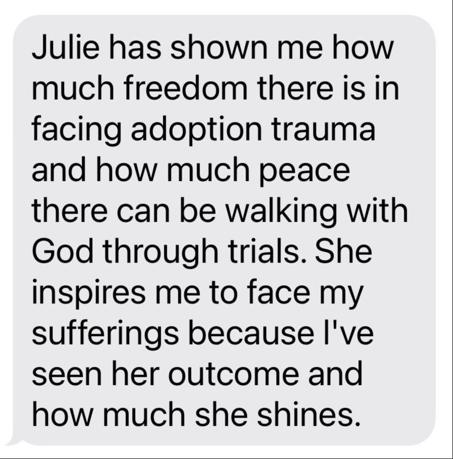 Now I'm using Somatics, nervous system regulation, personal experience and a Masters in Counseling to help other adult adoptees find their way out of their own trauma and into a life of radical self-belonging.